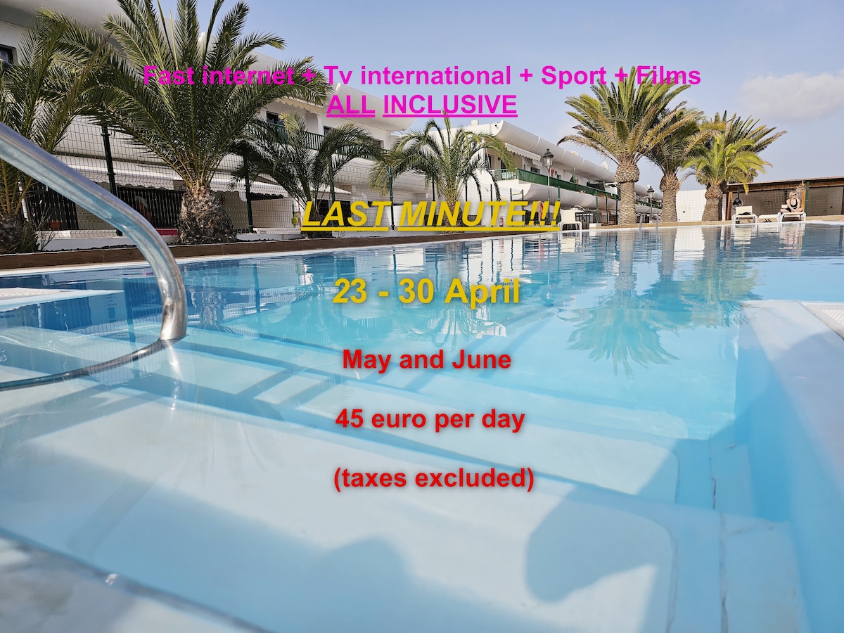 El apartamento de uso exclusivo se encuentra en Corralejo en un complejo residencial con piscina y solárium. El complejo bordea el "Parque Natural de Corralejo" y está a unos 400 m de las famosas "Grandes Playas" y "Dunas de Corralejo". El alojamiento consta de un dormitorio, salón con cocina, baño y una gran terraza. Estàn incluidos en el precio de alquiler la conexión Internet Fibra WI-FI (super rapida), toallas y sabanas. Aparcamiento gratis.