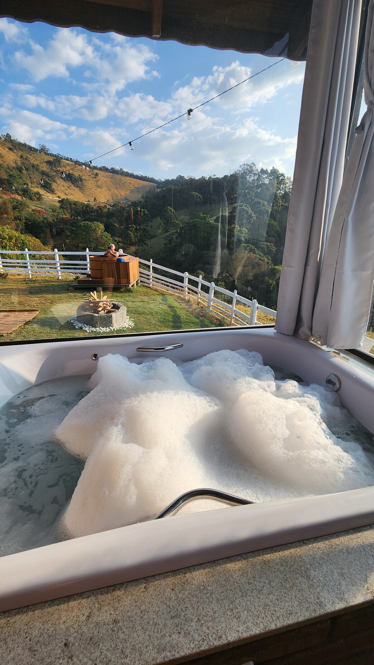Cabaña muy acogedora con increíbles vistas a la montaña en Serra da Mantiqueira. Lugar ideal para disfrutar solo en pareja o en familia en un clima de tranquilidad y armonía con la naturaleza. Excelente para aquellos que aman la naturaleza y quieren disfrutar de un vino, quesos, fondue, cocinar, hacer una fogata y también disfrutar de nuestro jacuzzi privado con una vista increíble. Esta maravillosa cabaña se encuentra en Córrego do Bom jesus (Sur de MG), a 160 km de SP, relativamente cerca de Monte Verde y Gonçalves.
