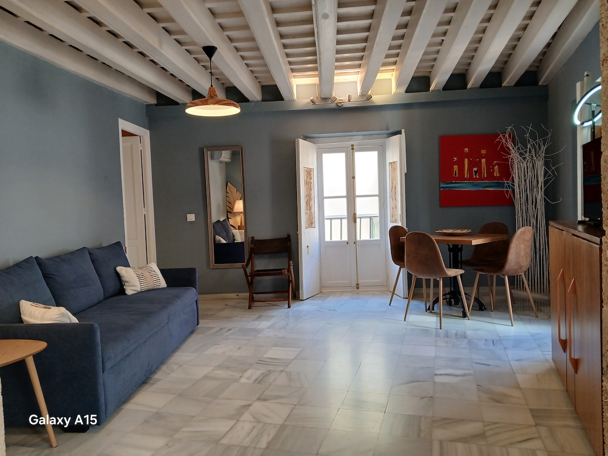 Disfruta de este precioso apartamento en el corazón del barrio del Pópulo, situado a solo 50 metros de la Catedral. Se encuentra en un edificio del siglo XVIII, recientemente rehabilitado con grandes patios que lo bañan de luz. La vivienda tiene un pequeño patio de uso exclusivo donde podrás disfrutar de un desayuno al aire libre. El bullicio del barrio queda totalmente apagado en este tranquilo apartamento y alejado de los ruidos exteriores.