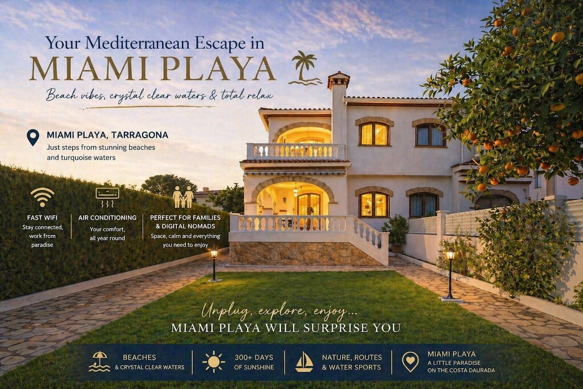 ✨ Encantadora casa en Miami Playa — ideal para familias y relax 🌴 · Casa espaciosa y muy luminosa · Amplia terraza privada con BBQ · Zona tranquila y familiar · Calas de aguas cristalinas a pocos minutos · Delta del Ebro · PortAventura: 20 min Amplios espacios, ambiente acogedor y auténtico estilo mediterráneo para desconectar cerca del mar. ☀️ Perfecta para vacaciones en familia, largas estancias o escapadas relajantes. 🌟 Reserva ahora y vive el Mediterráneo como en casa.