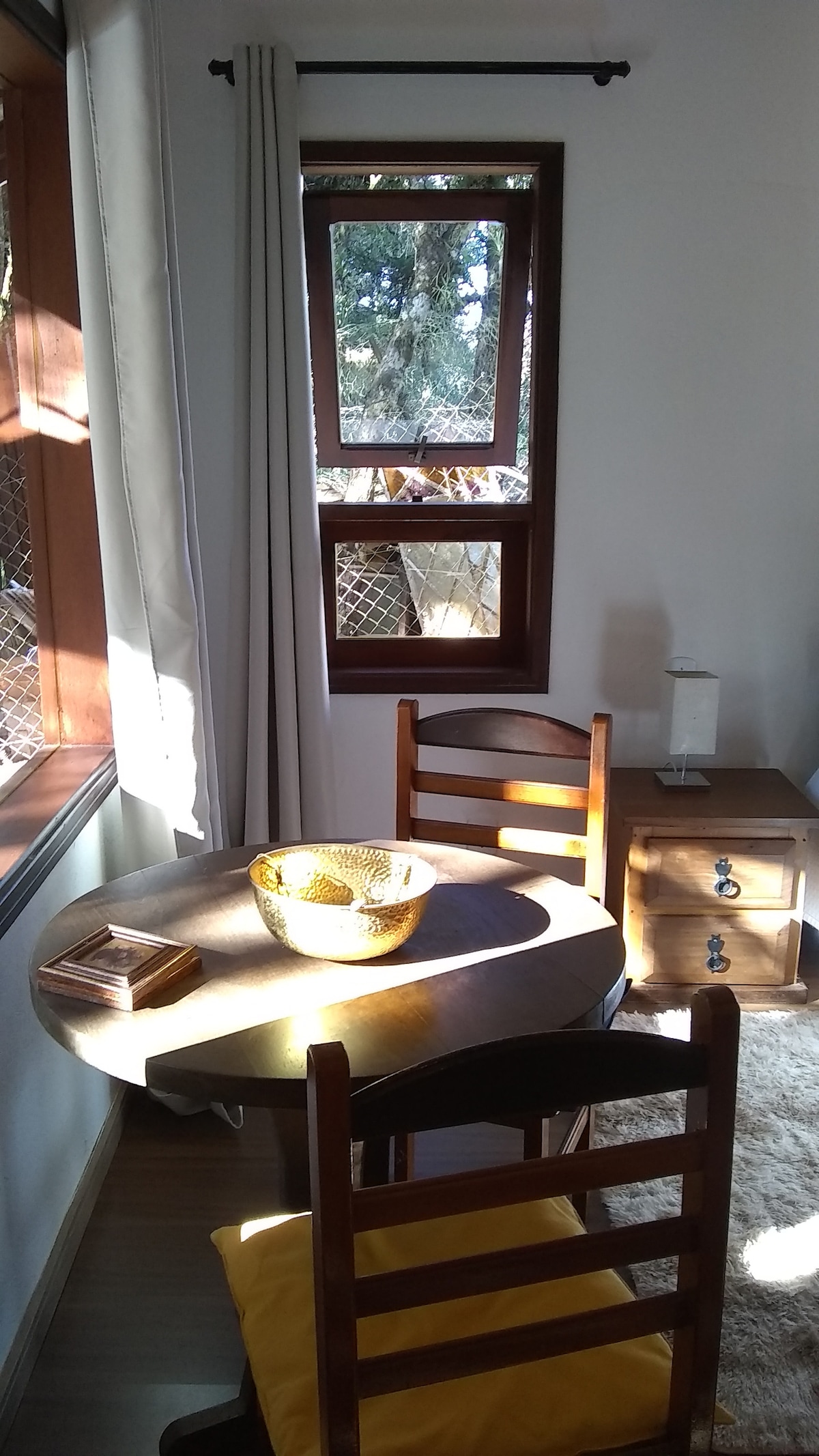 Un bungalow construido artísticamente en cada detalle... bañera abierta al bosque con techo de cristal dan la sensación de estar inmerso en la naturaleza, con una higuera centenaria al frente y muchas aves... íntimo y acogedor en conexión con la Naturaleza en contacto con esta zona de reserva de la Mata Atlántica. La otra ducha de hidromasaje está en la terraza abierta al bosque y es deliciosa de día o de noche con cielo estrellado y luna.