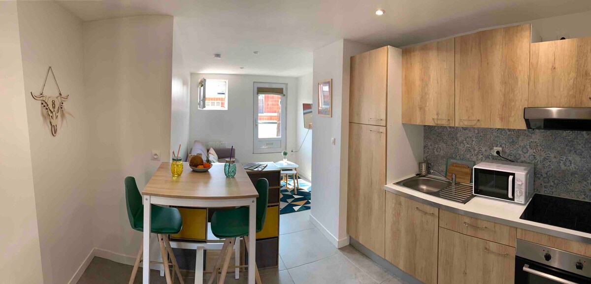 Situé à 70 m de la plage , et du centre ville Classé 3★ - Résidence de tourisme cette maison lumineuse et cosy allie confort moderne et esprit Bord de mer. Profitez d'un séjour convivial avec une belle pièce de vie baignée de lumière grâce à sa grande baie vitrée et son puit de lumière . L'espace comprend un salon confortable, une salle a manger chaleureuse et une cuisine équipée. A l'étage , une mezzanine accueillante abrite un lit double et dans le salon un canapé convertible pour deux pers