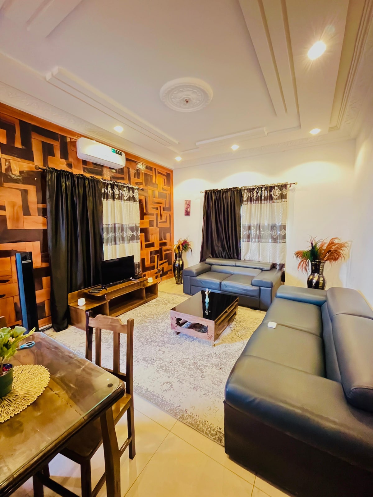 Villa nueva y moderna en Calavi Zoudja. 2 dormitorios, un amplio despacho, cocina totalmente equipada, jardín y garaje. La seguridad está garantizada con un guardia en el lugar. Perfecto para estancias familiares o viajes de negocios. Para facilitar su estancia, hay un coche disponible a mitad del precio de mercado, con conductor si es necesario.