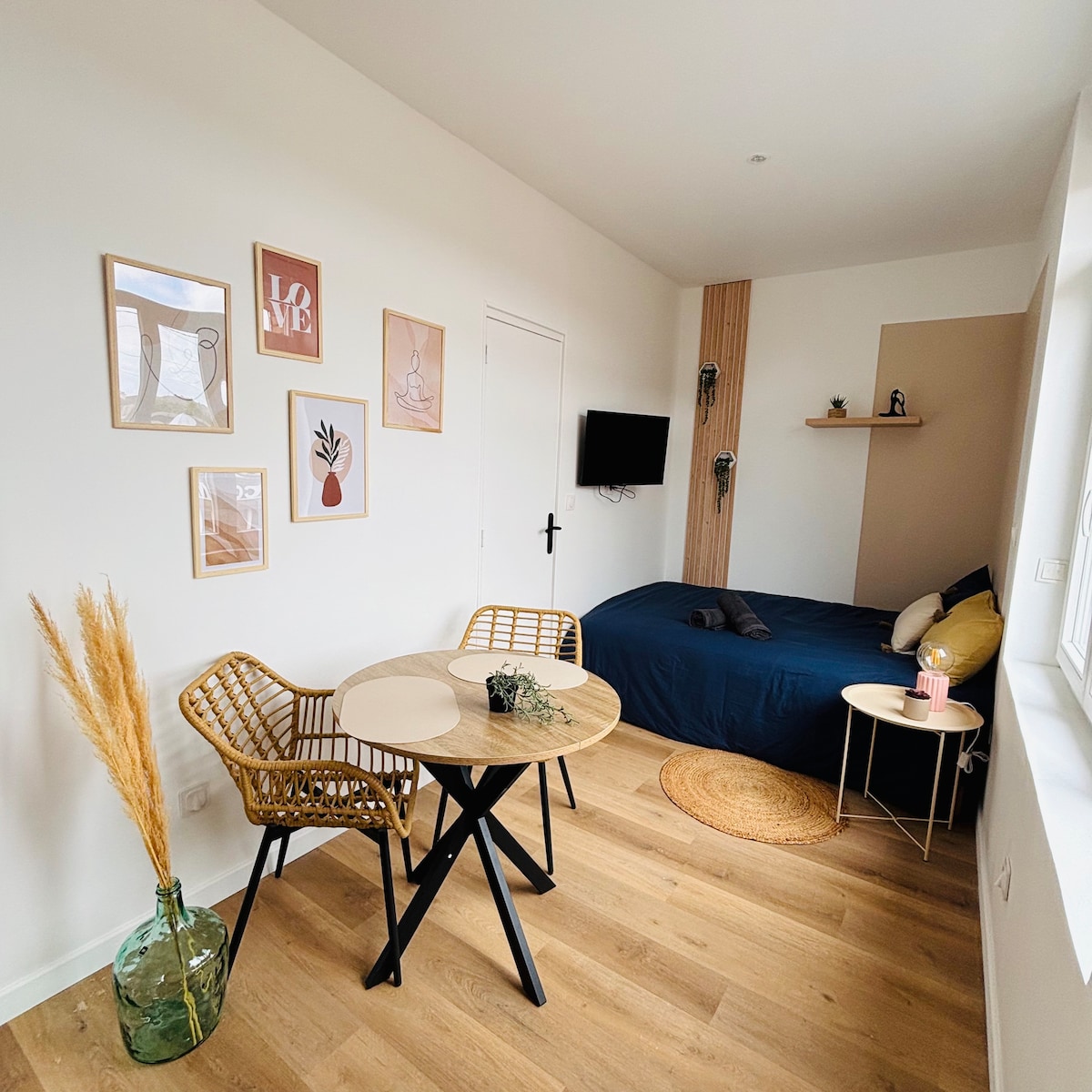 Bienvenido al Estudio Le Plumard Bleu. Ideal para trabajadores o parejas, aparcamiento gratuito en la calle, a 3 minutos de la autopista, a 10 minutos a pie de la estación de tren, autobús gratuito a 50 metros que le lleva a la playa (C3). Barrio tranquilo, perfecto para teletrabajar (wifi). Estudio luminoso (con persianas) situado en un edificio de la reconstrucción totalmente reformado (térmico y funcional) y clasificado con 2 estrellas. Destaca por su diseño que combina espacios a medida y una decoración elegante y chispeante.