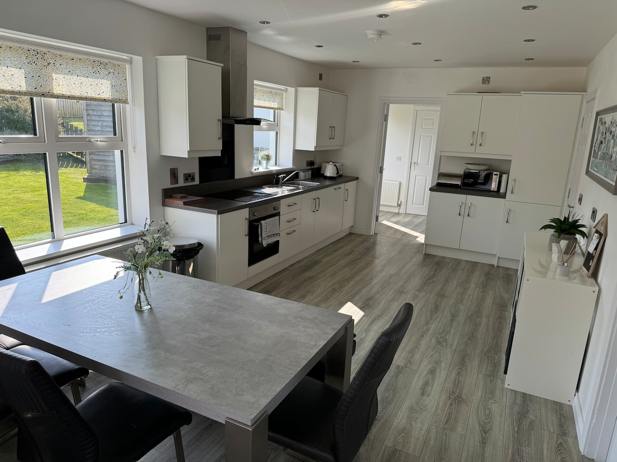 Escape to the beauty of Tullyally, Donegal, to this large, exquisite & secluded Airbnb. Immerse yourself in the stunning countryside & sea views, tasteful decor, & peaceful tranquility. Imagine waking up to the gentle glow of the sunrise, sipping your morning coffee & gazing at the shimmering ocean waves against the natural beauty. Within the Innishowen Peninsula are several award winning Restaurants, Golf Courses & watersports facilities. There are several stunning Blue Flag beaches close by