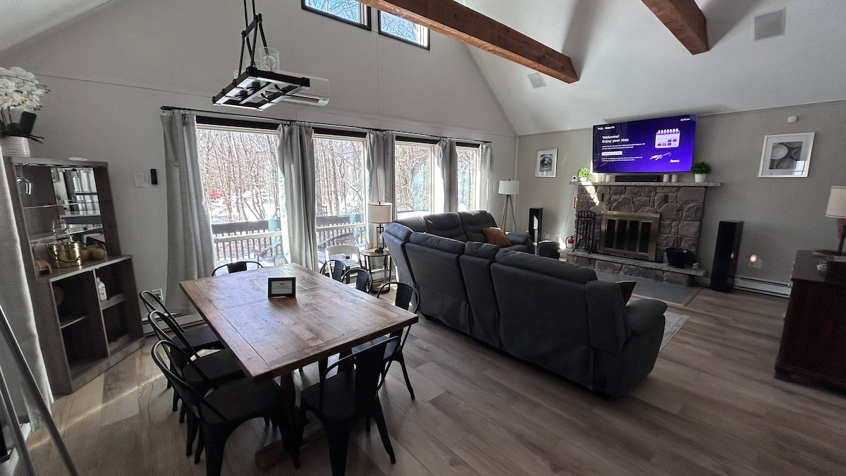 Skylight Chalet: tu escapada privada en el corazón de las montañas Pocono. Situado en casi un acre de exuberante bosque y rocas, nuestro refugio ofrece un perfecto equilibrio entre comodidad, comodidad y relajación. Relájate en el jacuzzi bajo las estrellas, rejuvenece en la sauna o reúnete alrededor de la chimenea para disfrutar de noches acogedoras con amigos y familiares. Ya sea que busques aventura o relajación pacífica, nuestra cabaña ofrece un santuario sereno para tu escapada. 📅 ¡Reserva hoy mismo y asegura tu escapada a Pocono!