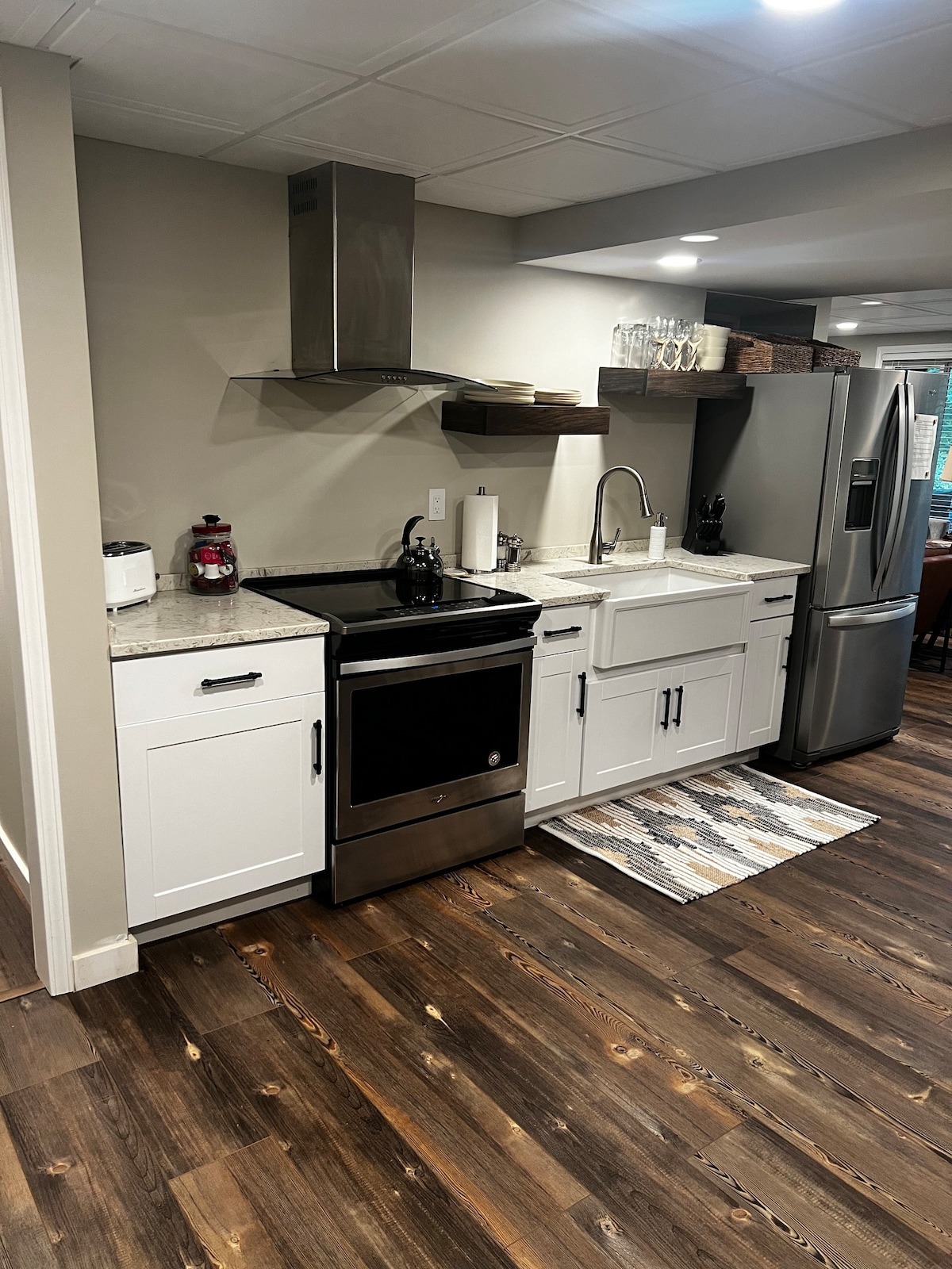 Relájate en este espacio tranquilo y elegante, 2 dormitorios, 1 baño, unidad de sótano totalmente equipada (ver fotos del anuncio con más detalles) No dudes en ponerte en contacto con nosotros si tienes alguna pregunta durante cualquier fase de la reserva. El pago básico de limpieza no se cobra durante la reserva (no se agrega en el desglose del precio principal). Debe pagarse antes del check-in. Por favor, revise dos veces, junto con su grupo, las NORMAS DE LA CASA. Vuelve a consultar si hay alguna actualización. Decoraciones sujetas a cambios. Gracias. Buen viaje.