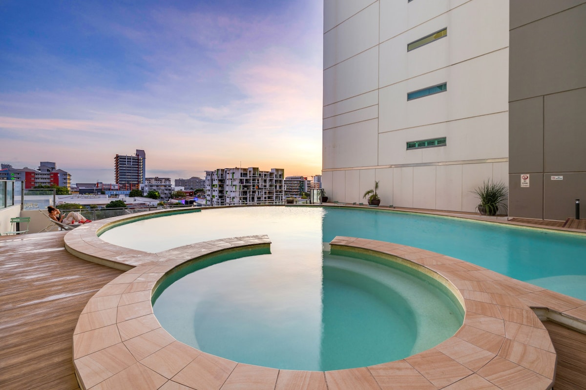 Las mejores reseñas. Lee nuestras reseñas y reserva sin duda. Departamento de una habitación en el nivel 10 de Pandanas Darwin. Ofrece unas vistas fantásticas de la piscina y la ciudad. Otras instalaciones: balcón, cocina pequeña, sala de estar separada, baño, aire acondicionado, ventiladores, TV inteligente, escritorio, caja fuerte, piscina, gimnasio y aparcamiento. En el corazón de la ciudad, a poca distancia de todo lo que puedas hacer en la ciudad (restaurantes, oficinas, clubes, tiendas, etc.). Sofá cama otomana adicional (confirma si lo necesitas al reservar).
