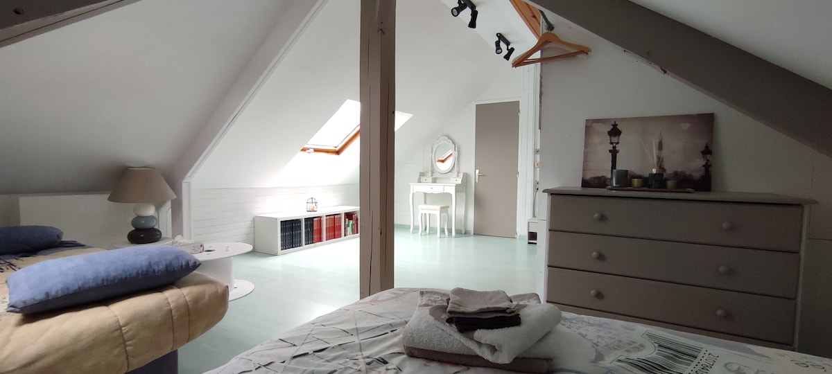 Descubre este encantador apartamento independiente, nuevo, acogedor y totalmente equipado, situado en un gran patio tranquilo. Ideal para una estancia de negocios o una escapada en pareja. El alojamiento en la planta baja consta de: - una estancia luminosa y cocina equipada (placa, nevera, microondas) - una zona de estar con un cómodo sofá y TV - una habitación con una cama doble grande (160 cm) - un baño con ducha y WC 📶 Wifi de alta velocidad 📺 Televisión 🔑 Acceso autónomo 🚆 Estación de Creil a 3 minutos a pie