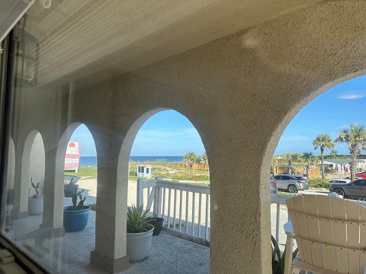 Nuestro apartamento recién renovado de dos dormitorios y dos baños en Oceanside es perfecto para tu próxima escapada. A solo 50 yardas del acceso directo a la hermosa y tranquila Crescent Beach, ¡ve de la puerta a la orilla en solo tres minutos! Disfruta de un café por la mañana (o de un cóctel a la hora feliz) en el patio cerrado con vistas a la piscina. A 15 minutos en coche del centro de St. Augustine y todo lo que ofrece. No te pierdas la temporada navideña «Noches de luces», que va del 18 de noviembre al 31 de enero.