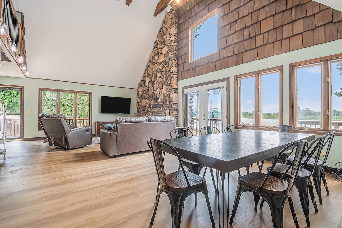 Large secluded home with a private drive and an amazing view! This three bedroom, three full bath home with an aviation theme, has plenty of space with a view of the Missouri River and a hot tub off of the master. Three queen beds, a twin with a twin trundle, and a pull out couch can sleep up to 10. Foosball and air hockey tables. There is a bike path at the end of the driveway and only a 7 min drive to Eppley Airfield.