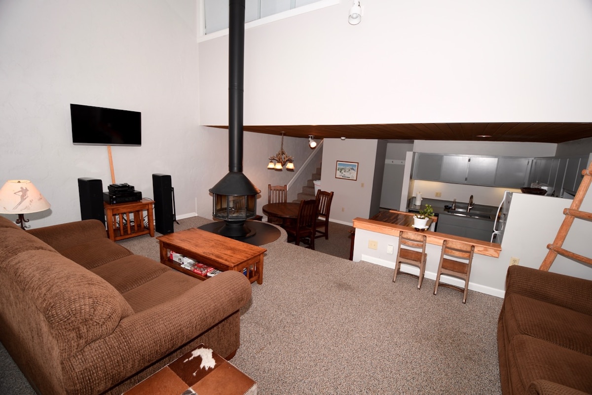 Mountain Hideout es un acogedor 1bd con fácil acceso al jacuzzi y al servicio de traslado de esquí, ¡ambos justo afuera de tu puerta! Esta cómoda y tranquila escapada a la montaña tiene una cocina de tamaño completo con estufa, horno, refrigerador y utensilios de cocina. Si prefieres comer fuera, simplemente da un paseo de 5 minutos hasta el área base o súbete al servicio de traslado gratuito. La sala de estar tiene un sofá cama para alojar a un tercer huésped. ¡Se proporciona un espacio de almacenamiento separado para esquís, bicicletas y otras pertenencias! ¡Una gran ventaja! No se admiten mascotas.