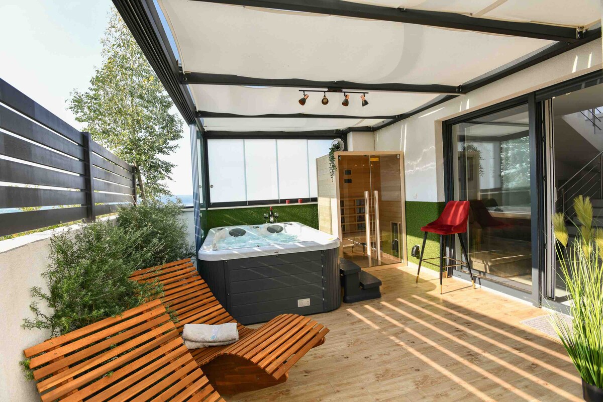 Penthouse escondido en la cima de una colina, con impresionantes vistas al mar y una serena zona de jardín sombreada con espacio para descansar. Aparcamiento privado y a 15 minutos a pie de la playa de arena. Televisor OLED Ambilight de☞ 43 pulgadas con Netflix. ☞ Dos elegantes baños con ducha de lujo. Wifi ☞ muy rápido de 500 Mb/s. Salón de lujo al aire☞ libre. Zona de estar en el patio☞ trasero con ambiente especial por la noche. A ☞ menos de 15 minutos a pie de la playa y de la ciudad. Envíanos un mensaje, ¡nos encantaría saber tu opinión! O visita: @hideaway_crikvenica