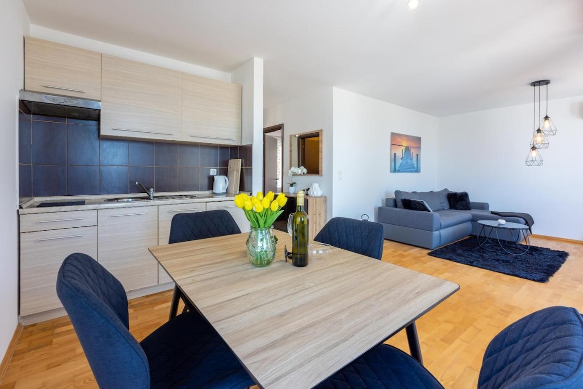 Apartamento nuevo y moderno con jaccuzzi y hermosas vistas al mar se encuentra en una ubicación tranquila, lejos de las multitudes de la ciudad. El departamento consta de una amplia sala de estar, cocina y comedor, un dormitorio y un baño. Es especialmente adecuado para familias con niños o amigos. El apartamento tiene aire acondicionado, tiene wifi y en la zona al aire libre se puede disfrutar en jaccuzzi en la terraza con vistas al mar y otra terraza cubierta con barbacoa. Aparcamiento privado disponible.