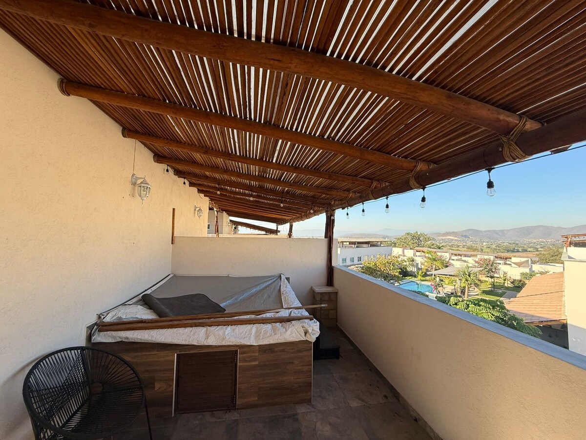 Tómate un descanso y relájate en este tranquilo oasis. A 20 minutos de Temixco. Excelentes restaurant para comer delicioso (Radisson, el Faro), centro comercial a 15 minutos, piramides de Xochicalco y lugares para pasar una velada con excelente ambiente para disfrutar en familia o con tus amigos.