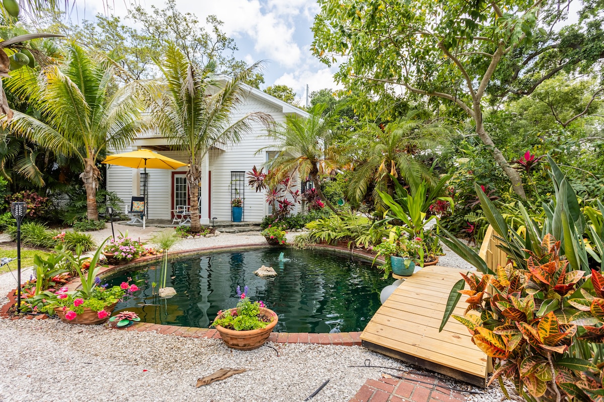* Luna de miel/Islas Caladesi (10 min) * Pinellas Trail: bicicleta/caminata/carrera * Caminata/bicicleta hasta St Joseph Sound (ideal para las puestas de sol). * Muelles de Downtown Dunedin y Tarpon Sponge (10 min) * Patio con ventilador y luces * Patio vallado con parrilla, vista al estanque, un fogón * Se proporcionan sillas de playa, toallas y juguetes de playa, ¡incluso algunas cañas de pescar para el muelle! * Se proporcionan 2 bicicletas para adultos.