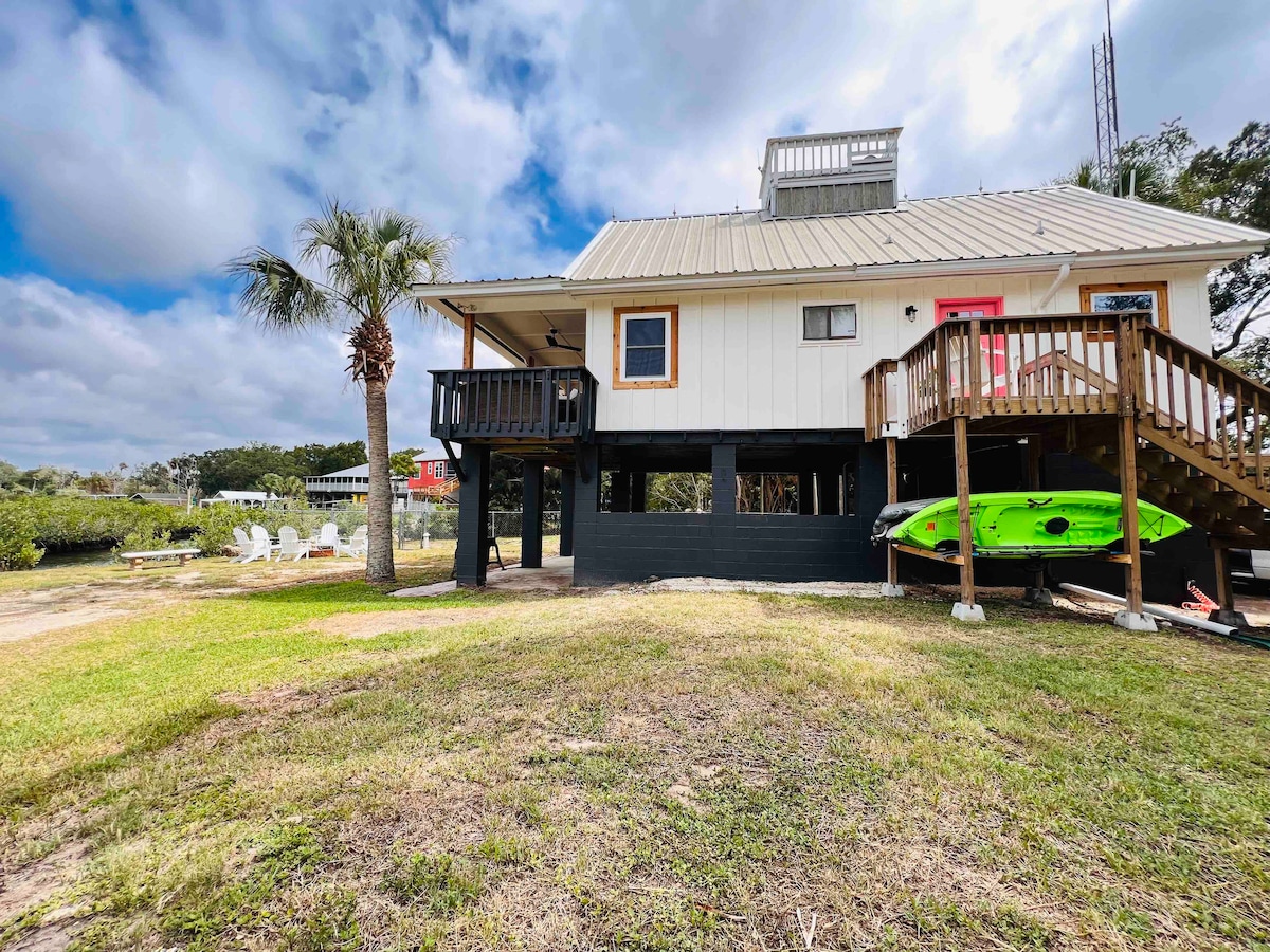 ¡Esta hermosa casa sobre pilotes está lista para darte la bienvenida! Tenemos un canal de aguas profundas muy deseable, perfecto para cualquier barco. A solo 15 minutos del golfo, donde tendrás las mejores festoneadas, pesca y navegación. Y puedes hacer kayak en el río desde el muelle. Nuestro muelle tiene capacidad para dos barcos de hasta 40 pies, ¡observa manatíes, delfines y nuestra nutria marina desde la cubierta! Tiene capacidad para 8 personas y tiene dos hermosos porches protegidos. Las comodidades incluyen cocina totalmente equipada, generador para toda la casa, kayaks y parrilla