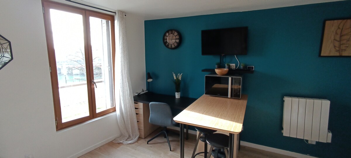 ✨ Cocoon Bohème ✨ ✔ Casa de pueblo ✔ Aparcamiento municipal gratuito disponible a 5 minutos a pie ✔ Llegada autónoma con caja de llaves ✔ A 15 minutos a pie de la estación de tren ✔ Wifi de alta velocidad gratuito ✔ Habitación 1 con cama King Size y espacio de almacenamiento ✔ Habitación 2 con 2 camas individuales (que también se pueden juntar para formar una cama tamaño «king») ✔ TV QLED ✔ Sala de estar con sofá cama y televisión ✔ Cocina totalmente equipada, con una gran mesa de comedor ✔ Cuarto de baño con ducha e inodoro ✔ Lavadora