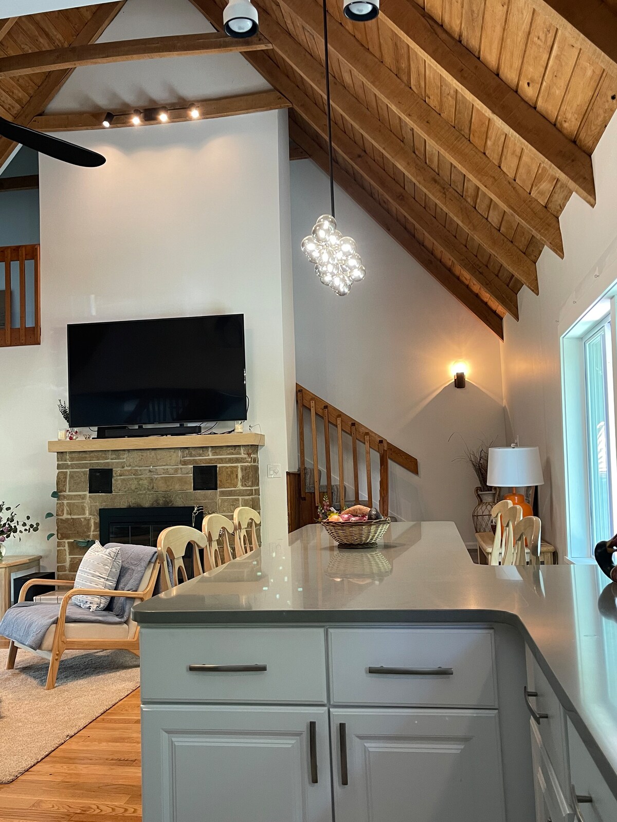 Ahora, utiliza la tecnología UV para limpiar, que utiliza más tiempo para desinfectar y ventilar, ver el nuevo registro de entrada/salida. Preciosa casa de campo disfruta de increíbles puestas de sol desde el porche trasero con el primer piso, comida en la cocina: nevera completa, microondas, cafetería y parrilla. La sala de estar cuenta con un cómodo sofá y silla para leer con sofá cama tamaño queen y televisión, baño completo en el primer piso, baño completo en la ducha. El segundo piso tiene un techo elevado con cama tamaño queen, tocador, televisión, escritorio y silla. Entrada a la caja de seguridad. Se permiten mascotas: tarifa adicional.