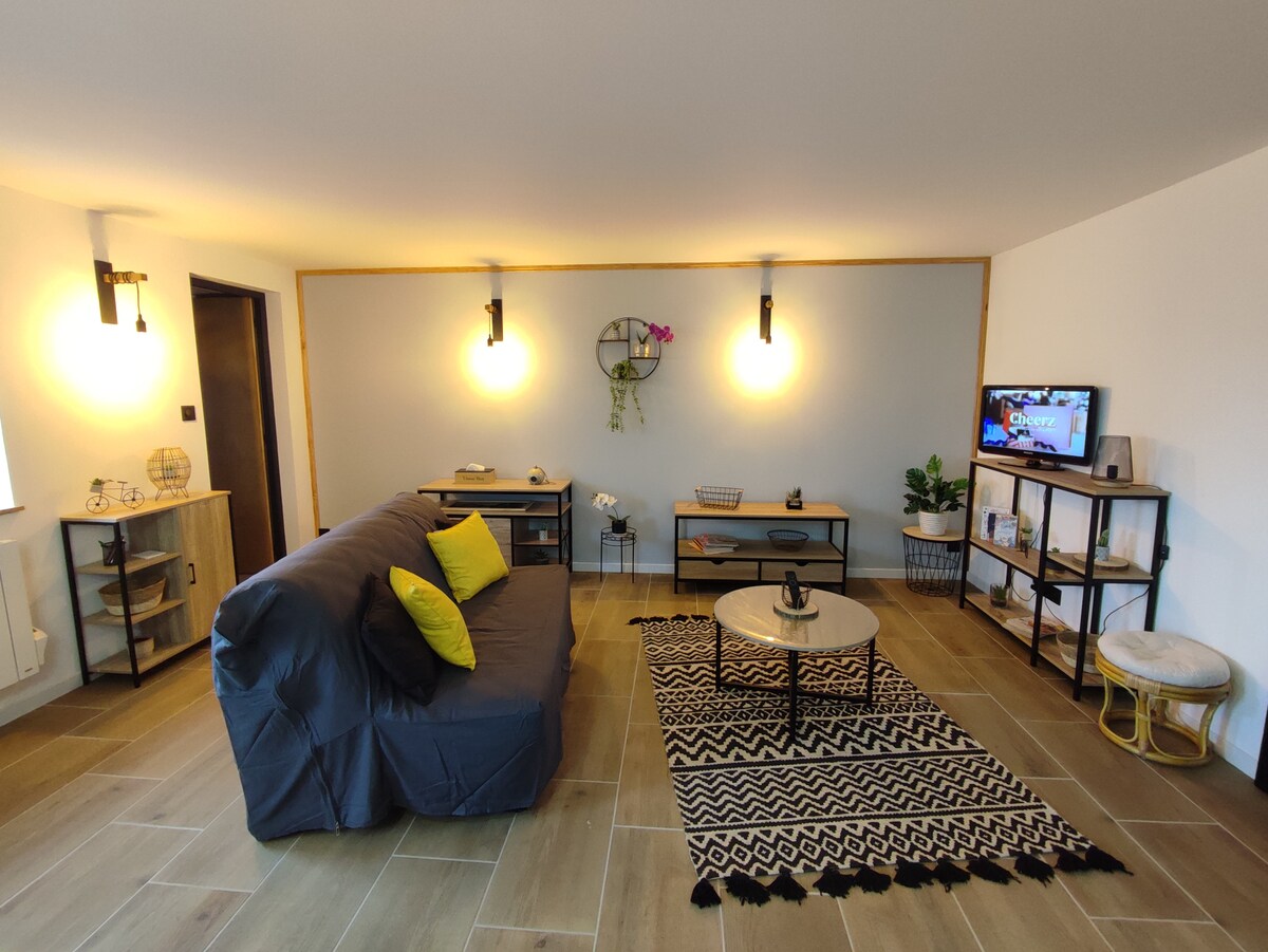 Estudio independiente y elegante de 48 m² en una casa unifamiliar, con capacidad para 2 personas. Está equipado con una cocina americana, un dormitorio, una zona de escritorio, una zona de estar con TV y un baño y aseo separados (cuna y sillón a petición). Una zona de relax para descubrir ;) Toallas y ropa de cama incluidas en el precio. El alojamiento también dispone de un patio para aparcar y un jardín privado (mesa de jardín, mesa de ping-pong).