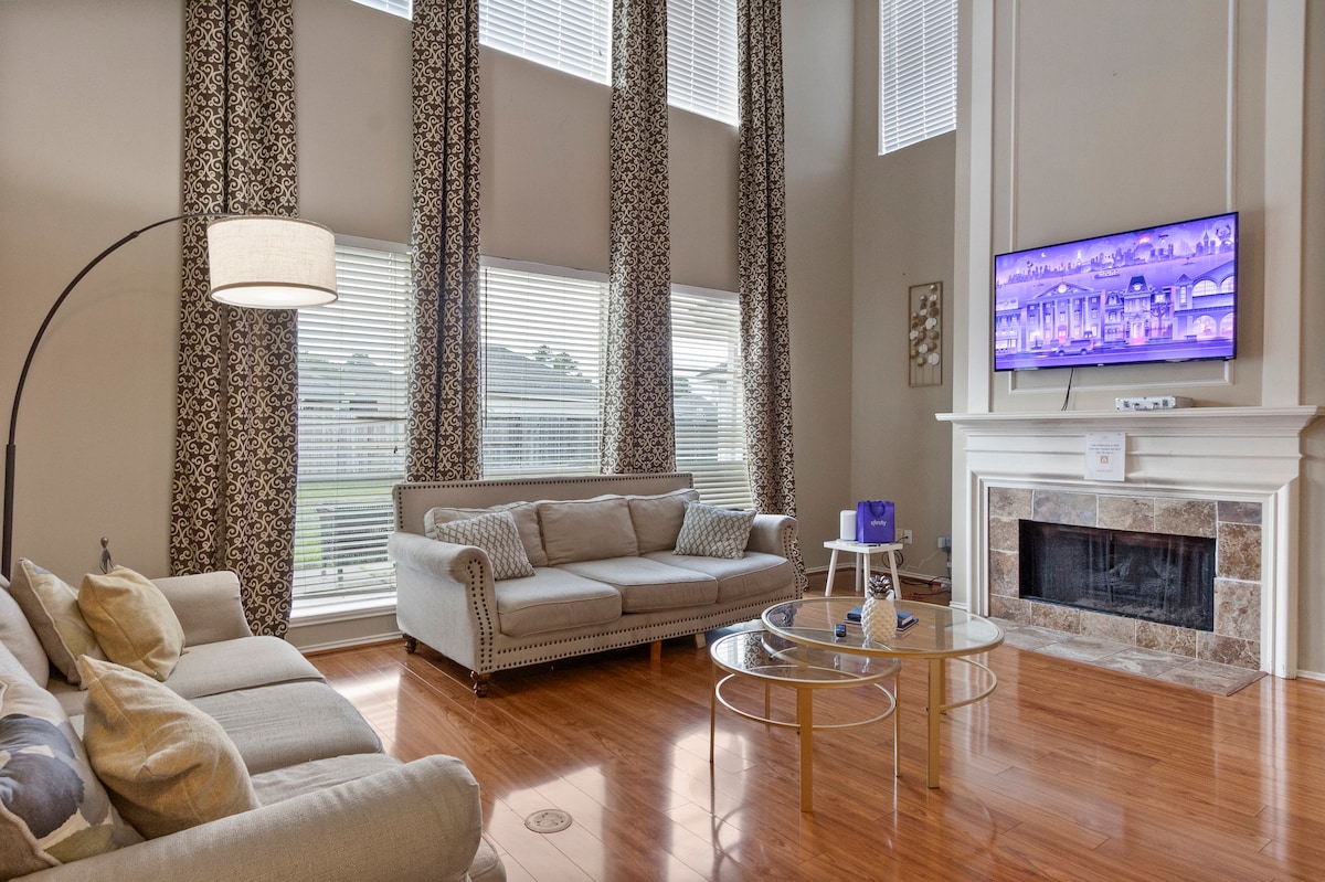 ¡Te damos la bienvenida a tu refugio de lujo de 4 dormitorios! Disfruta de una piscina climatizada, un cine en casa privado y una amplia sala de estar perfecta para familias o grupos. 4 dormitorios de lujo y 3 baños y medio Cocina del chef totalmente equipada Wifi rápido y espacio para trabajar Asientos y parrilla en el patio trasero A minutos de restaurantes, tiendas y las principales autopistas, pero escondido en un barrio tranquilo para noches de descanso. ¡Reserva ahora para asegurarte las fechas y empezar a planificar una estancia inolvidable!