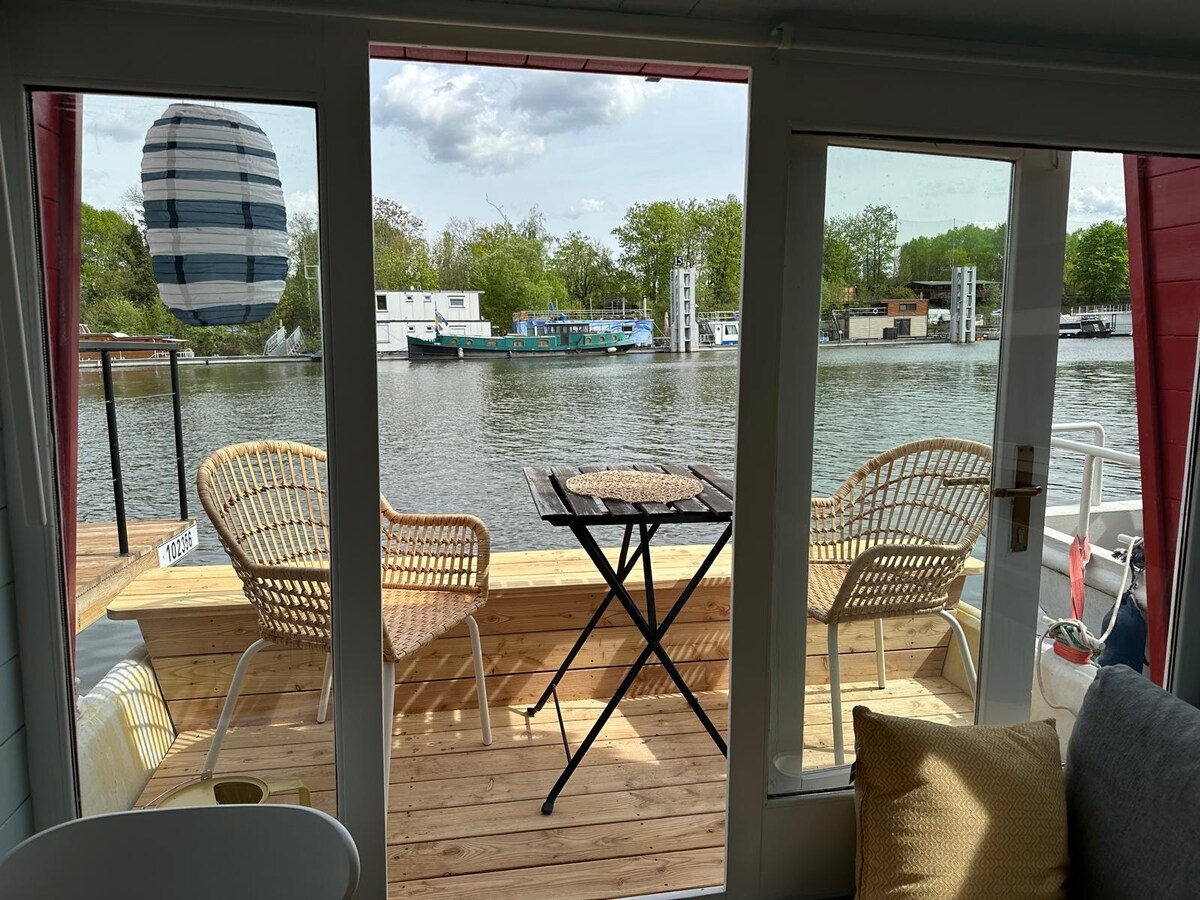 Te enamorarás de esta estancia única y romántica. Una casa flotante absolutamente encantadora hecha con mucha pasión por los detalles y la comodidad. Vivirás una estancia inolvidable y no querrás irte. Puedes pescar, simplemente observar el mundo del río lleno de peces o probar el paddleboard. La casa flotante está equipada con una cama de matrimonio y una cuna para bebés. Prepara tu experiencia de degustación en una cocina totalmente equipada. Después de un día completo, podrá relajarse junto a la chimenea. Siéntese en la terraza y observe la tranquilidad de la superficie del agua. Aparcamiento justo al lado de la casa flotante.