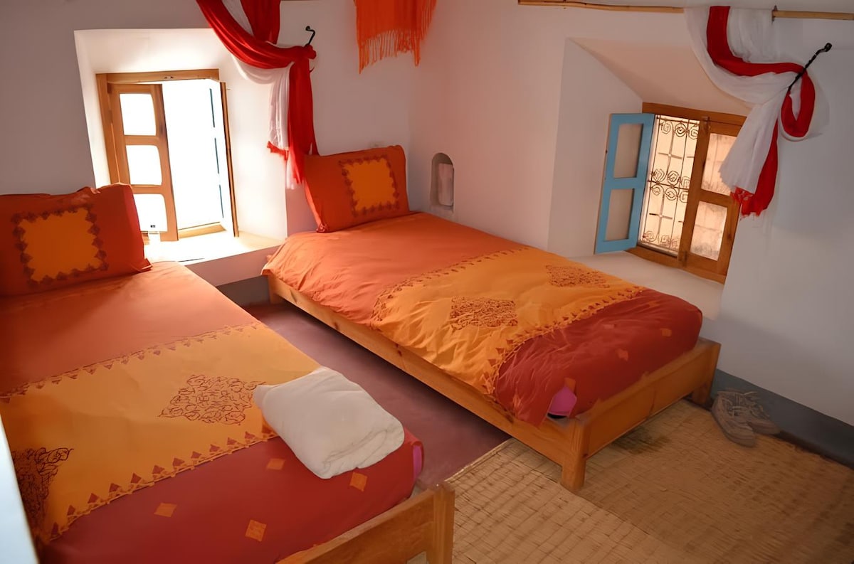 Détendez-vous à la Kasbah Iswan, dans une chambre lumineuse donnant sur le jardin. Atmosphère paisible, décor berbère et salle de bain privative. Petit-déjeuner maison inclus, terrasse panoramique et hospitalité marocaine. À 10 min de Kelaat M’Gouna, idéal pour se ressourcer.