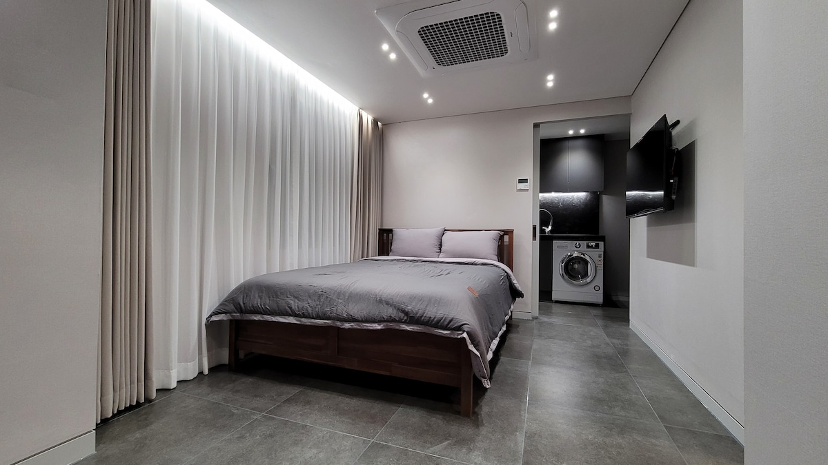 Hola, somos Onda que estudian y proporcionan varias áreas de descanso. Espero que todos los que se alojen aquí disfruten de un momento cómodo y feliz. [Introducción al alojamiento] Dado que se encuentra en la estación de Jungangno (Dongseong-ro), el centro de Daegu, es una buena ubicación para llegar a cualquier lugar de Daegu. Consta de varios tipos de habitaciones, perfectas para estadías de corta duración, viajes de negocios y más. Disfruta de una escapada urbana en nuestra residencia. [Tipo de habitación] Estudio (1 cama doble + 1 inodoro) * La ropa de cama se proporciona de acuerdo con el número de personas que hayas reservado.