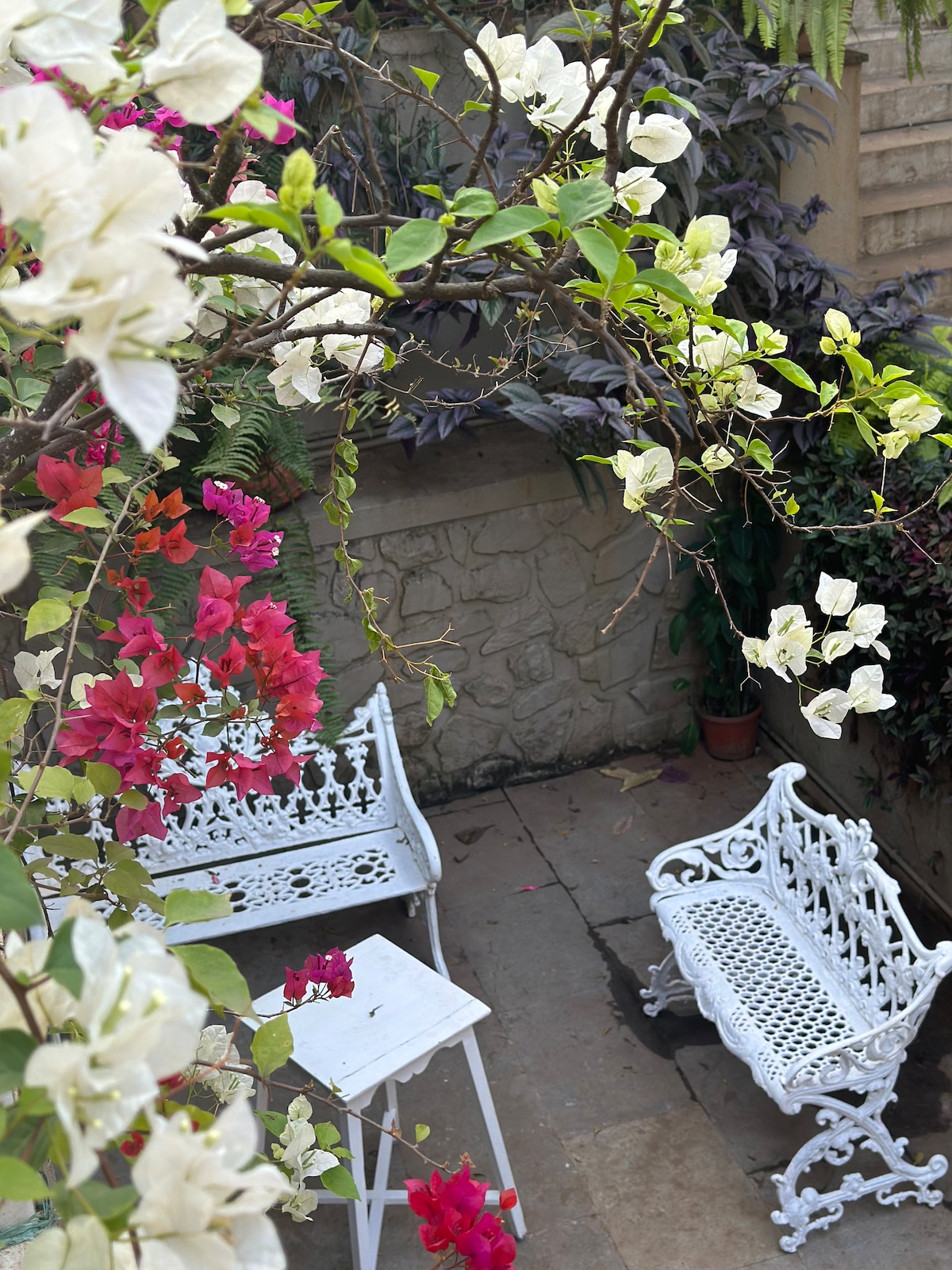 Escápate de la ciudad y rejuvenece en la naturaleza con la familia en esta granja de medio acre, tranquila y bellamente restaurada, ¡completa con tu propio arroyo privado! La propiedad tiene varios niveles de césped y es abundante con árboles y plantas. La casa ha sido restaurada en un estilo de Goa/Portugués con puertas y ventanas de madera de teca birmana, azulejos españoles y muebles originales de teca y palo de rosa. Relájate en los balcones delanteros o traseros y disfruta de una amplia iluminación del jardín y de una hoguera por la noche.