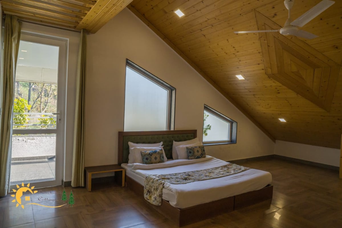 Deja que la luz natural entre a través del techo solar, proyectando tonos dorados a través de esta suite ático de ensueño en Indulge McLeodganj. Con vistas al valle dignas de postal, interiores ambientales y rincones acogedores para leer o descansar, este espacio se siente directamente de una novela de montaña. Ideal para creativos, soñadores y parejas que persiguen la belleza.