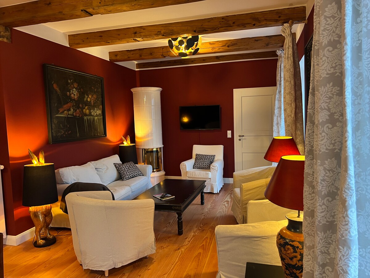 Nuestra hermosa casa oficial es la antigua residencia del duque de Oldenburg y está ubicada en la parte trasera de nuestra finca, rodeada de vegetación con vistas a campos y prados. Las habitaciones son amplias y están diseñadas con buen gusto e incluso con muchas personas siempre puedes encontrar tu propio refugio para respirar. Un enorme jardín privado con terraza y muebles de jardín te espera, junto a él es nuestro prado de caballos.
