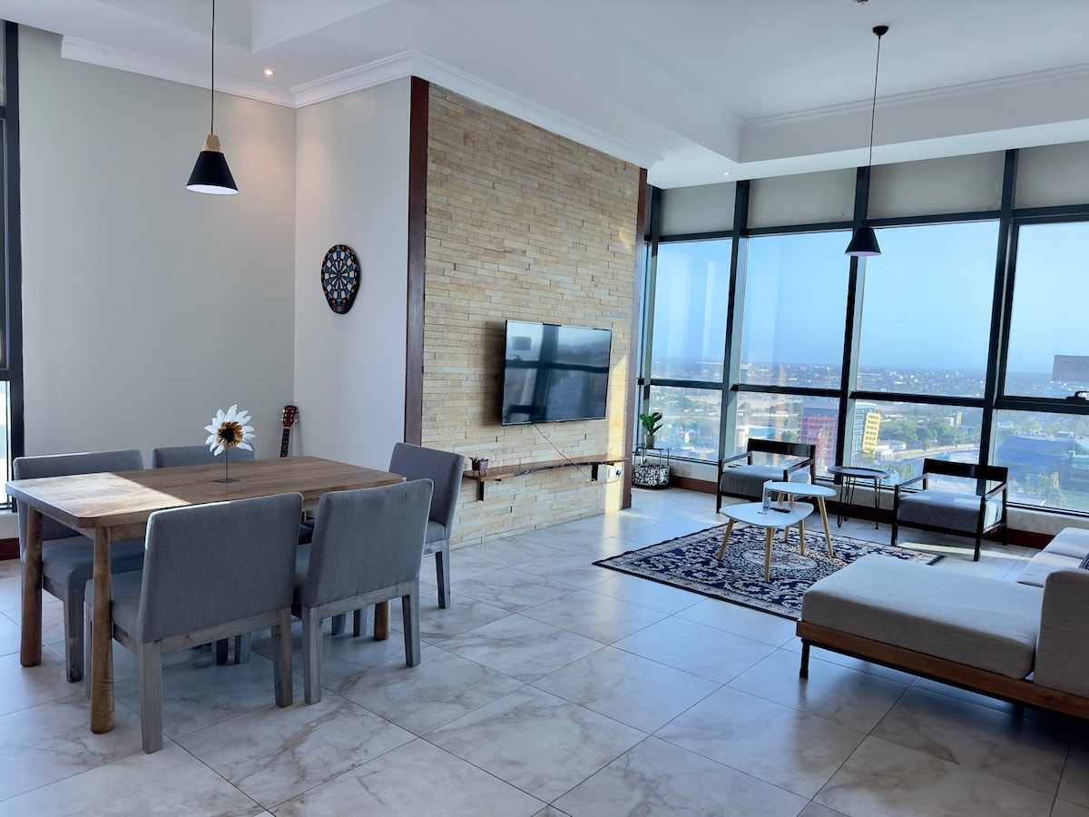 Nuestro dúplex de 3 dormitorios ofrece impresionantes vistas al puerto y a la ciudad de Dar es Salaam. Amplio y diseñado con estilo, perfecto para familias o grupos. Tres dormitorios, dos baños, cocina totalmente equipada, sala de estar y comedor de planta abierta, balcón. Dormitorio principal con cama tamaño king y baño privado. Seguridad las 24 horas, gimnasio, piscina. Experimenta la vida de lujo en el corazón de la ciudad. Reserva ahora para disfrutar de una estadía cómoda y agradable.