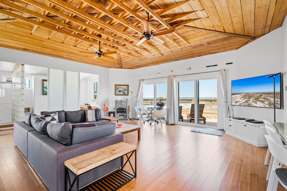 Stunning, newly renovated property at the highest point on Dauphin Island with 270 degree views of the water! Offering the perfect blend of comfort and coastal charm, the nearest public beach access is just 0.7 miles away. Enjoying the shoreline couldn’t be easier. Step inside to a fully equipped kitchen, then unwind on the front, rear, or side decks while your family explores the nearby dunes. Conveniently located near Pirate’s, the island’s favorite restaurant, and just a short drive to Dauphi