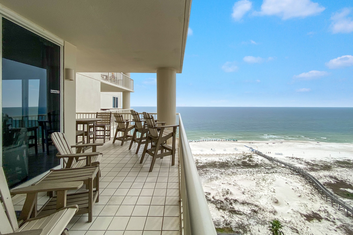 Despiértese con vistas panorámicas del golfo, desde el suelo hasta el techo, desde su dormitorio principal, la sala de estar y la cocina. ¡Disfrute de una estadía frente a la playa con decoración costera en uno de los complejos turísticos más lujosos de la zona! ¡Con una amplia playa, 4 piscinas, 3 restaurantes en las instalaciones más food trucks, un bar Tiki, parrillas, cancha de baloncesto, cancha de voleibol, cancha de tenis, cancha de pickleball, área de juegos para niños, spa y cafetería! ¡Nunca tendrá que salir del complejo turístico! Ubicado en la prístina y tranquila zona de Fort Morgan, está a solo 15 minutos de las zonas turísticas más concurridas.