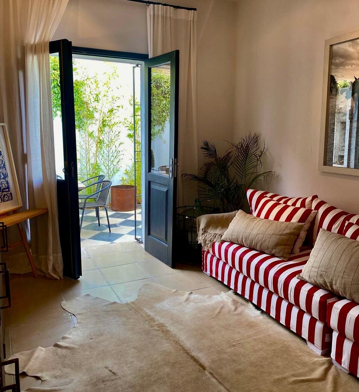 Monoambiente con hermoso patio a 1 cuadra de la rambla, en Puerto del Buceo. Ideal para personas que les gusta el aire libre. La rambla tiene mucho espacio verde y la vista de los veleros del puertito. El apartamento está totalmente equipado ya que es mi hogar y lo alquilo solo cuando no estoy en él. Tiene muy buena conexión a internet. Se encuentra a 2-3 cuadras de Montevideo Shopping, el WTC, locales comerciales restaurantes. Tiene muy buen transporte público.