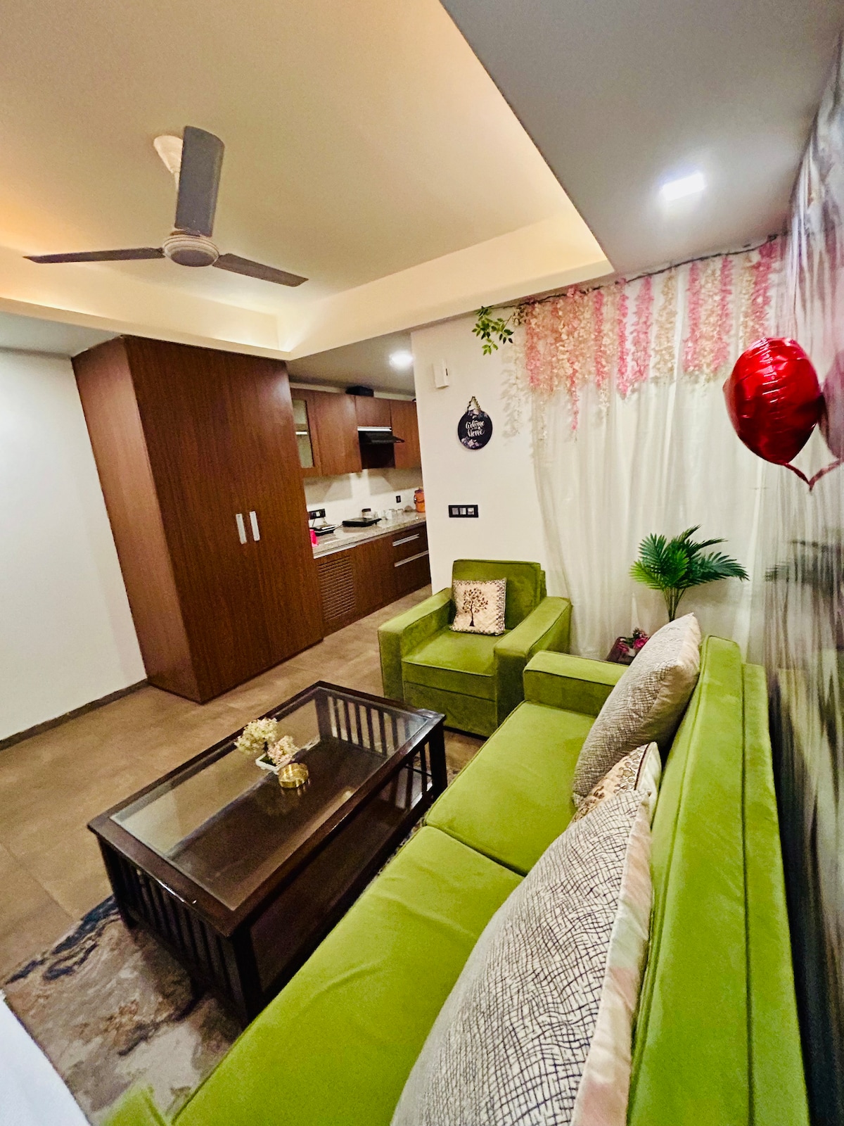 IG - shelterandsky Cinematic Stay at Shelter & Sky - Escape into a world of peace, comfort, and cinematic charm. - Enjoy movies on a large projector screen that turns evenings into theatre-like experiences -Sip coffee or unwind on two private balconies, and soak in the calm mountain air. -Perfect for couples seeking romance, friends creating memories, or solo travelers finding serenity, this unique stay blends relaxation, creativity, and the magic of cinema in every moment