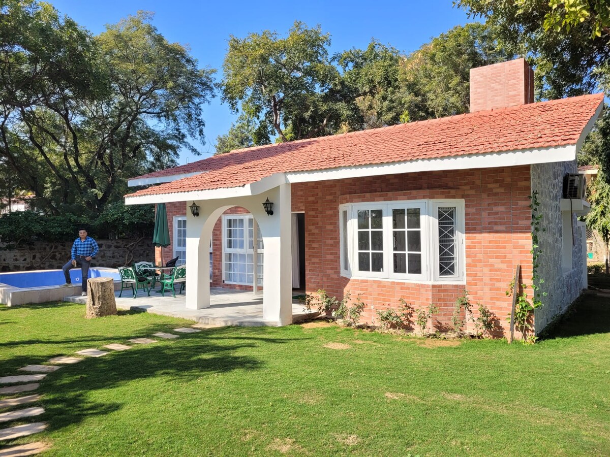 Una casa de campo de estilo británico con hermosas rosas, un césped exuberante y una piscina romántica para una escapada feliz de la ciudad. A una hora en auto de Gurgaon, la cabaña se encuentra en una encantadora fila de casas de campo, cerca de campos de mostaza y un campo de cricket. Muy cerca del Heritage Transport Museum (5,3 km) y NeverEnuf Rail Garden (3 km). ¡Un lugar perfecto para pasar un fin de semana!