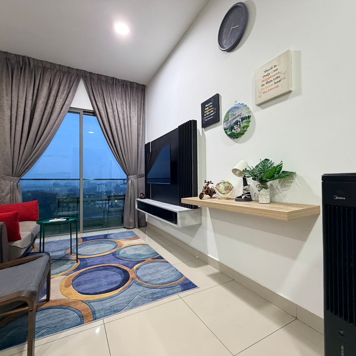 @ Spacious Lakeview Studio Unit. @ piso alto con impresionantes vistas al lago Putrajaya. Televisión inteligente de 45pulgadas instalada con Netflix, Disney+ Hotstar y YouTube. Todo el acceso es gratis. @ Conexión WIFI de banda ancha de alta velocidad. Nevera, horno microondas, freidora de aire, fogón, hervidor de agua y utensilios de cocina para uso básico en la cocina. @ Lavadora con área de secado. @ Cómodo colchón tamaño king. @ Baño limpio con ducha caliente. @ Instalaciones del club @ Filtro de agua Cuckoo @ Entrada con cerradura inteligente