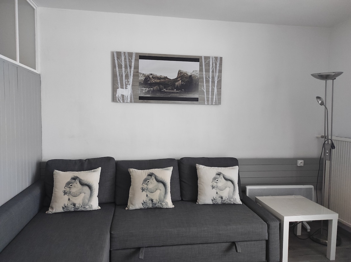 Location en couple ou en famille notre appartement 🐿️ 🐿️ Le balcon des écureuils 🐿️🐿️ 27m3 au troisième étages du grand bâtiment du bois d'aurouze côté vallée, très bien exposé, vue dégagée avec balcon, tv connectée, équipée pour 2 a 4 personnes (cinquième sur demande possibilité de lit parapluie) Un canapé convertible 160 avec sur matelas mémoire de forme, lit superposé, deux placards. le coin nuit a une séparation d'origine avec une verrière qui sépare le coin enfants et le canapé lit.