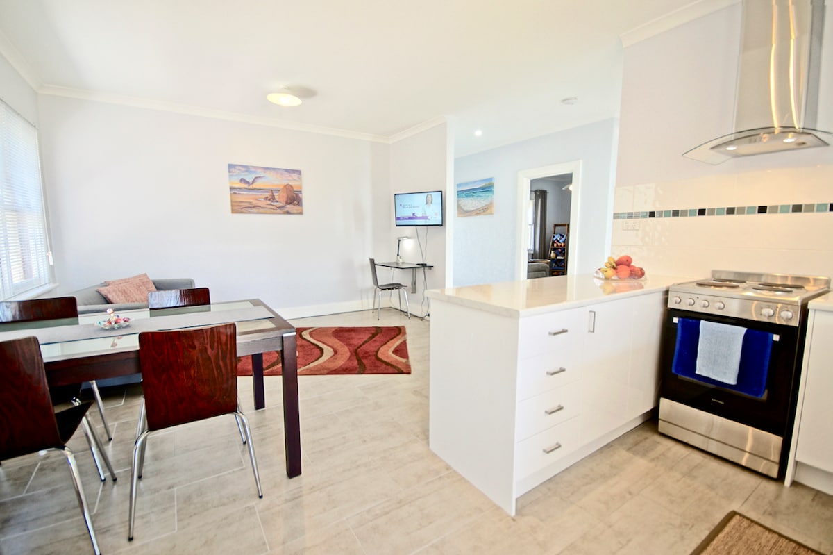 Apartamento privado, cómodo y espacioso en un entorno ajardinado. Con salón/comedor abierto y luminoso, cama tamaño queen, cocina completa y baño grande con lavadora. Plaza de aparcamiento privada cubierta para coches/furgonetas. Se proporcionan provisiones para el desayuno y cafetera de cápsulas. Los aspectos de accesibilidad incluyen puertas anchas, sin escalones y ducha de fácil acceso. Coles Beach está a 300 metros. La reserva Don, el centro acuático, el ferrocarril histórico y los cafés/restaurantes Bluff están a poca distancia a pie por senderos.