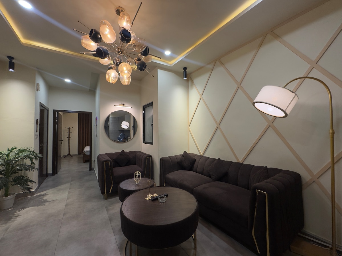 Presentamos el epítome del lujo en el corazón del F11 Markaz de Islamabad. Este exquisito Airbnb de 2 dormitorios ofrece el refugio perfecto para tu próxima estancia. Ubicado en un edificio residencial, encontrarás el Markaz principal justo al otro lado de la carretera, lo que garantiza un cómodo acceso a tiendas de comestibles, artículos esenciales y restaurantes a poca distancia a pie. Con un tamaño generoso de 1650 pies cuadrados, este apartamento ofrece un amplio espacio, creando un ambiente abierto y sin aglomeraciones para tu comodidad y relajación.
