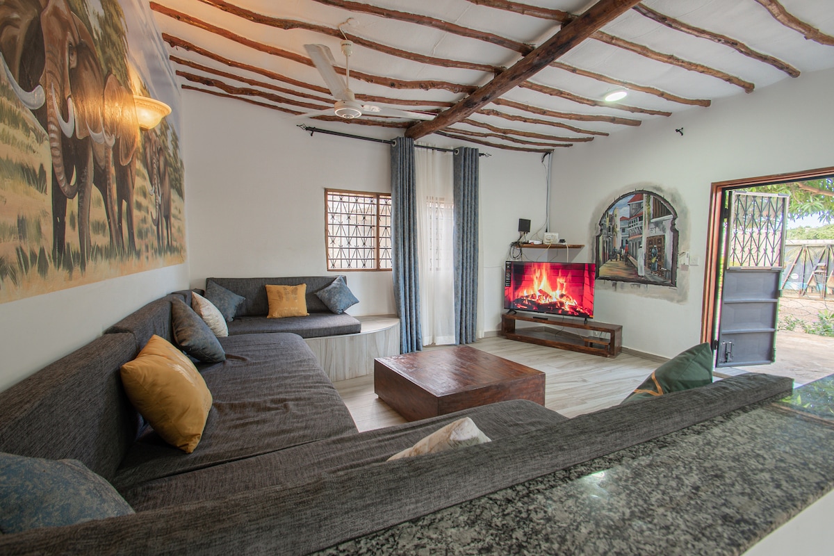 ¿Buscas un lugar sereno para relajarte mientras disfrutas de la tranquilidad de la obra de la madre naturaleza a tu alrededor? Bueno, ¡Karimu Beach Hive es el lugar perfecto para ti! La casa de campo de 1 dormitorio está situada en un complejo privado a lo largo de la carretera de Diani Beach, justo enfrente del Diani Reef Resort. Cuenta con aparcamiento privado, cocina, sala de estar equipada con sistema de sonido, TV UHD de 55 pulgadas, wifi gratuito, comedor/zona para portátiles y 1,5 baños. Está a 5 minutos a pie de la playa, del club de golf Leisure y del hospital Diani Beach.