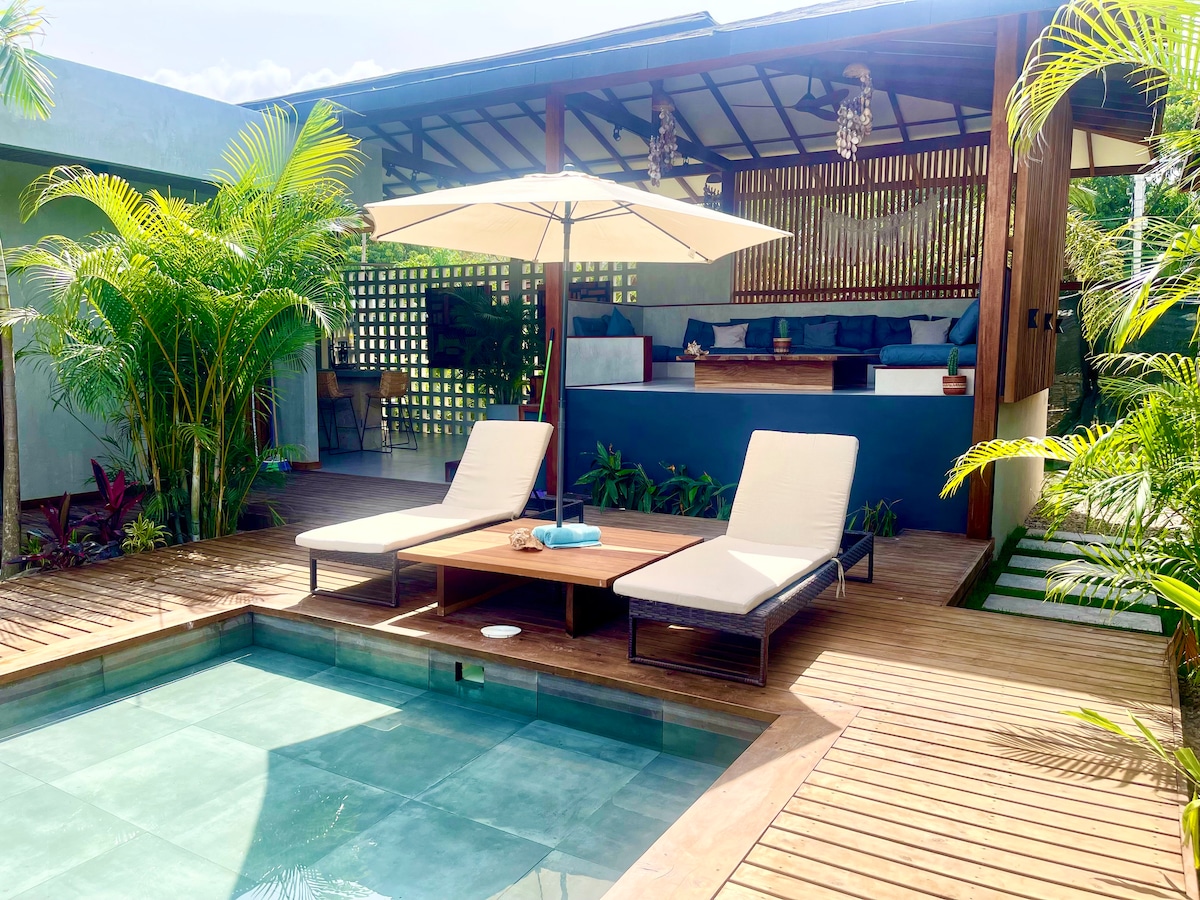 Amazing house in the center of Palomino only 3 blocks to the beach, river, and downtown. On a quaint tree lined street. The house contains 2 Bedrooms, a large living & dinning room, kitchen, and bathroom featuring an open air shower. We have a great patio and pool with outdoor dinning area and hammock, as well as expansive grounds. Enjoy the tropical excitement of this special place right next to a beautiful national park. Nature and convenience await you, including fast Starlink Internet.