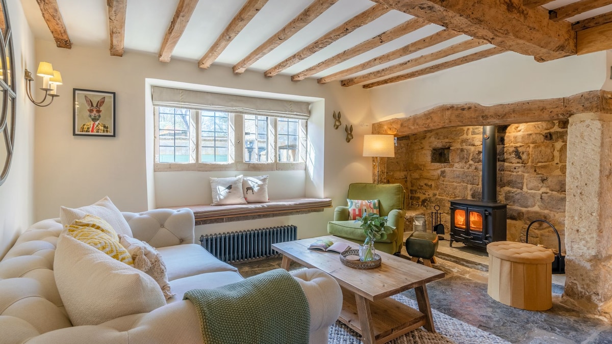 Situada en el corazón de Winchcombe, con vistas panorámicas a las colinas de Cotswold, Little Nook Cottage es un encantador refugio, perfecto para parejas o una pequeña familia desde el que explorar los Cotswolds. Encontrarás vigas bellamente diseñadas y suelos de piedra originales combinados con todos los lujos que necesitas para disfrutar de un descanso relajante. ¡Cuenta con una acogedora sala de estar/comedor con chimenea, una habitación doble supercómoda e incluso un espacio de trabajo dedicado si deseas trabajar fuera de casa!