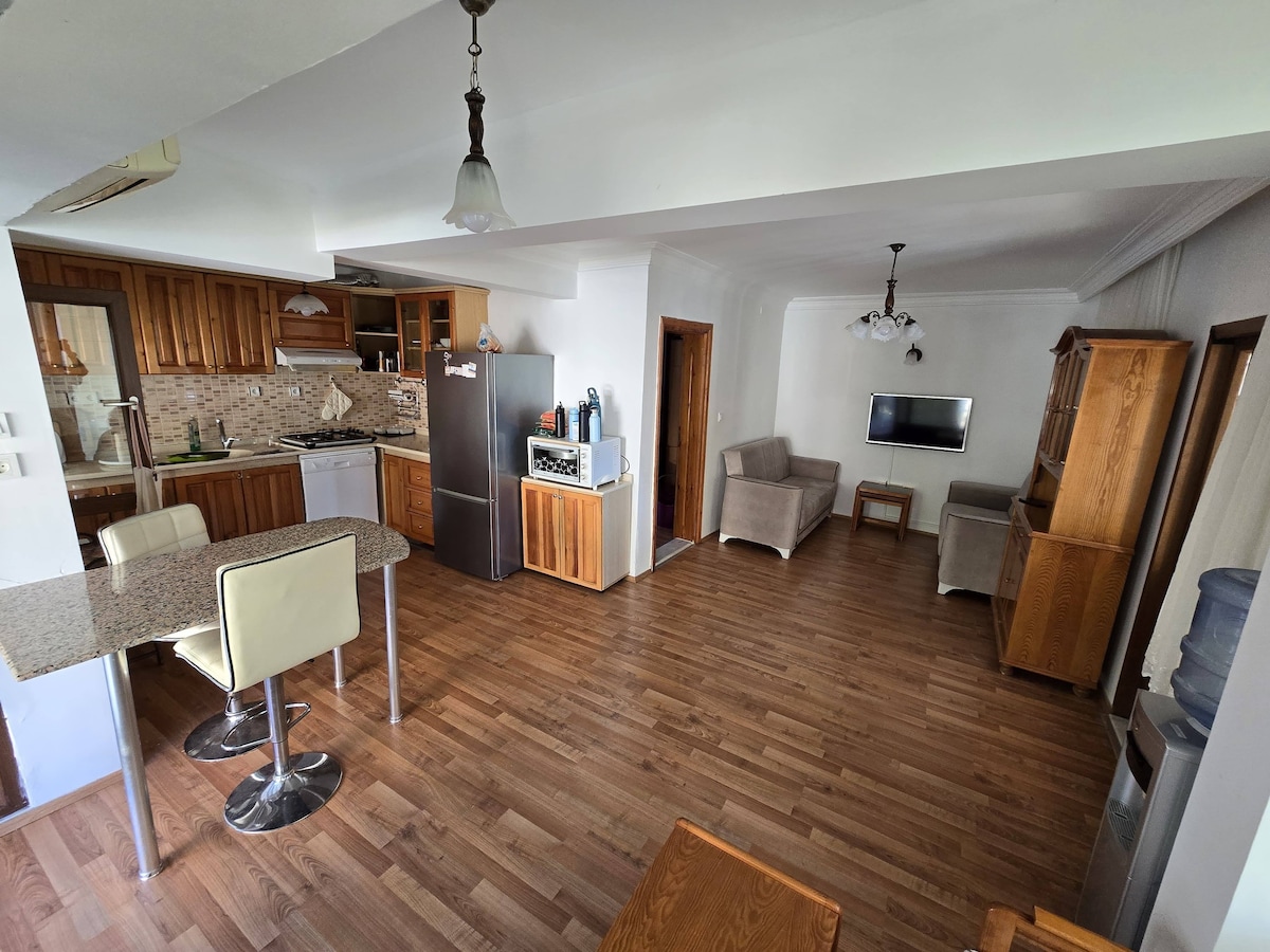 1+1 Piso de jardín a 250 metros de la playa Uslu Sitesi Lavavajillas, lavadora, barbacoa e Internet wifi ilimitado incluidos. Hay un estacionamiento. Hay 1 cama doble y 1 habitación con cama individual y sala de estar (sofá cama con 1 sofá cama L).