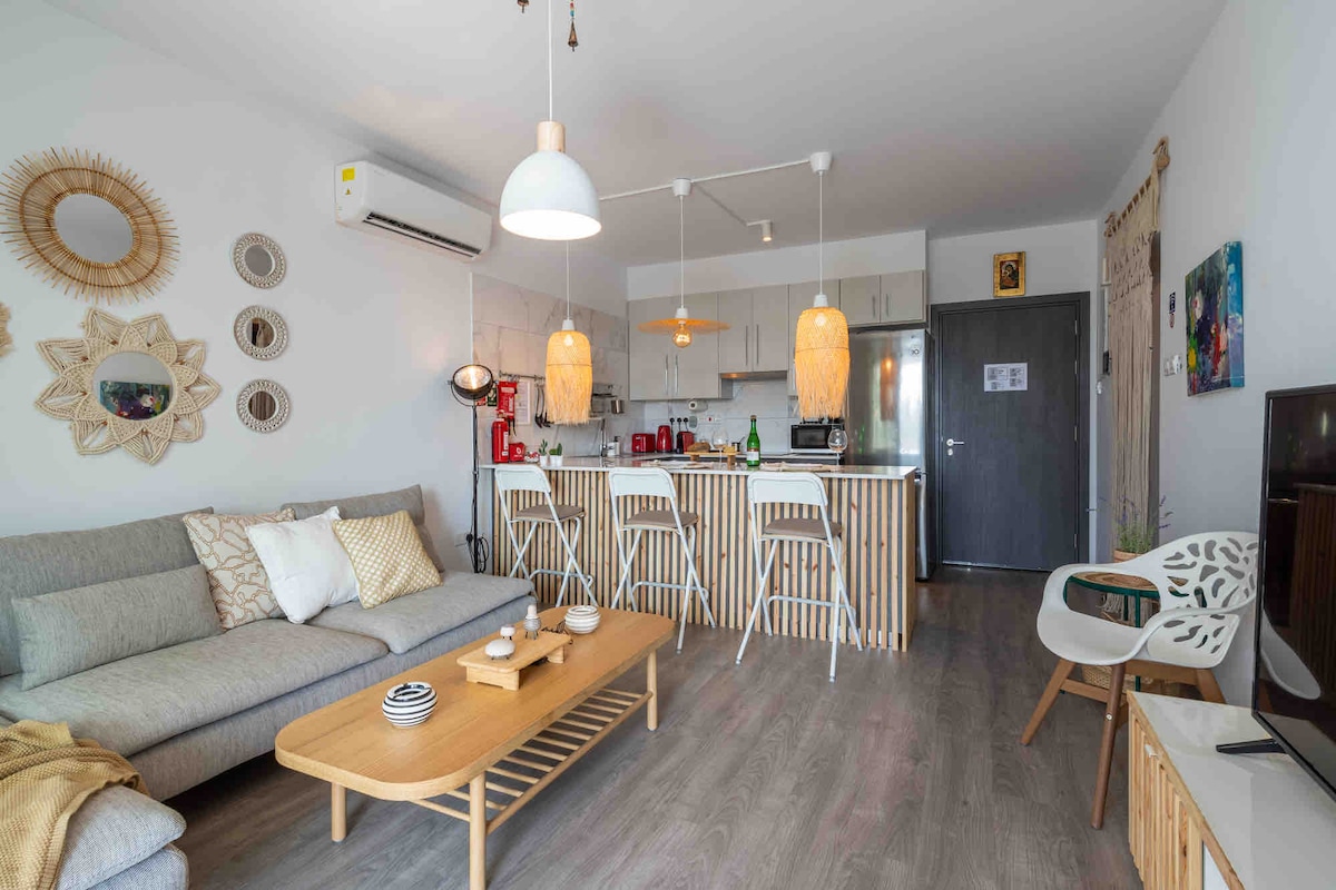 Welcome to our Chic & Modern 1-Bedroom Apartment! This brand-new, tastefully designed apartment offers a cozy and elegant home away from home in a quiet neighborhood, just minutes drive from downtown Larnaca and within walking distance to the beach. Enjoy the comfort of a stylish living area and unwind on the private balcony with lovely side views of the sea - perfect for a morning coffee or a relaxing evening. Ideal for both short getaways and extended stays.
