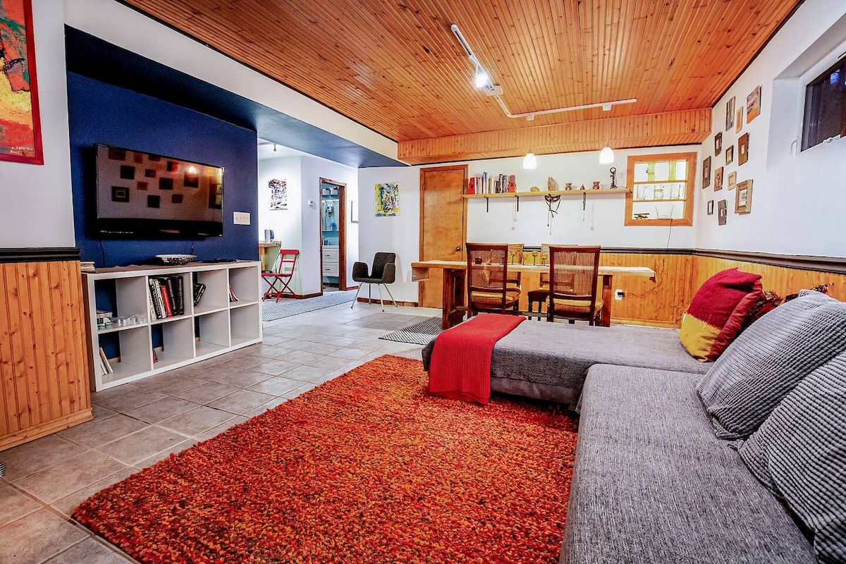 ¿Buscas una escapada a la montaña? Ven a escapar a nuestra casa de campo Poconos, que combina a la perfección la comodidad moderna y el encanto rústico en un entorno privado y boscoso. ¡Explora rutas de senderismo cercanas, disfruta de restaurantes locales, esquía, pesca, barco o simplemente abraza la tranquilidad de la naturaleza mientras te sientas junto al fuego! También disfrutarás de conexión Wi-Fi rápida, aire acondicionado y una chimenea de gel en el interior.