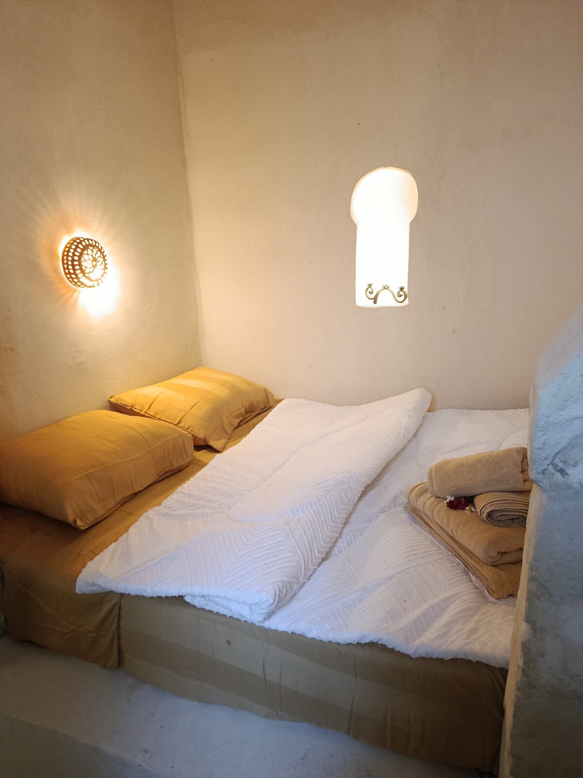 Estamos encantados de recibirte en nuestra casa tradicional de Djerbi, de 150 años de antigüedad, situada en el corazón de la animada medina de Houmet Souk. Esta casa de un dormitorio acaba de ser renovada, pero se ha conservado su arquitectura histórica. Cuenta con un sofá cama adicional, una gran azotea y un balcón con vistas a la ciudad. Está situado en el centro, rodeado de cafés históricos, restaurantes, tiendas locales y el antiguo zoco. A pocos minutos a pie de la catedral y la mezquita de los turcos, y a 1 minuto a pie del aparcamiento público