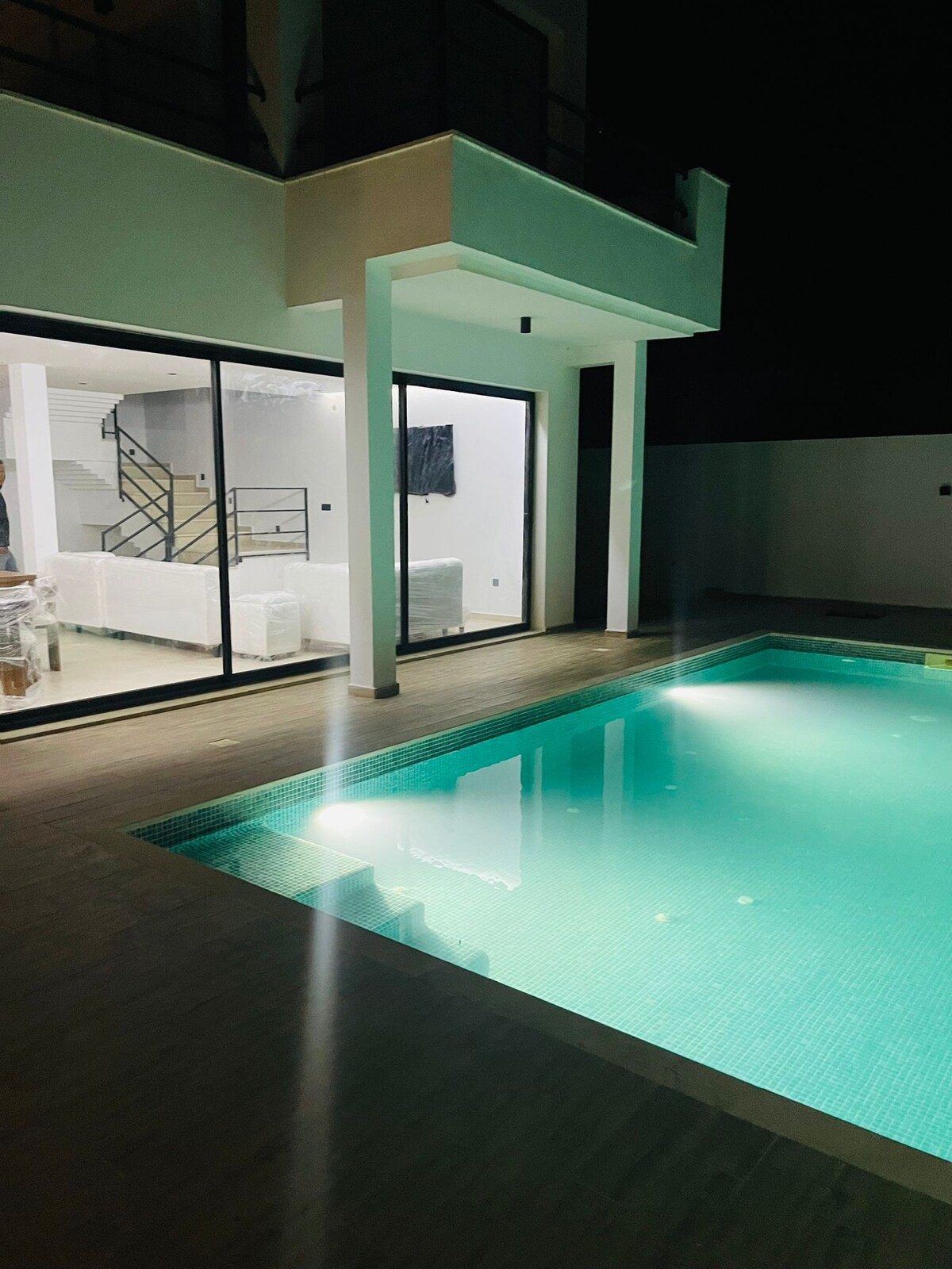 Villa AYOUB Située à Tazdaine, Midoun, la maison se compose de : - 4 suites parentales dont 3 a l’étage et une au RDC. - Superbe double salon et salle à manger. - Cuisine moderne qui donne sur le salon et salle à manger style américain . - 4 salles de bain. - 5 salles d’eau. - Jardin gazonné avec espace de plantes. - salle à manger extérieur . - BBQ. - Piscine debordement avec cascad 9/4 Sans Vis à Vis. - Système d’alarme et caméras de surveillance 24/24 . - Accès internet.