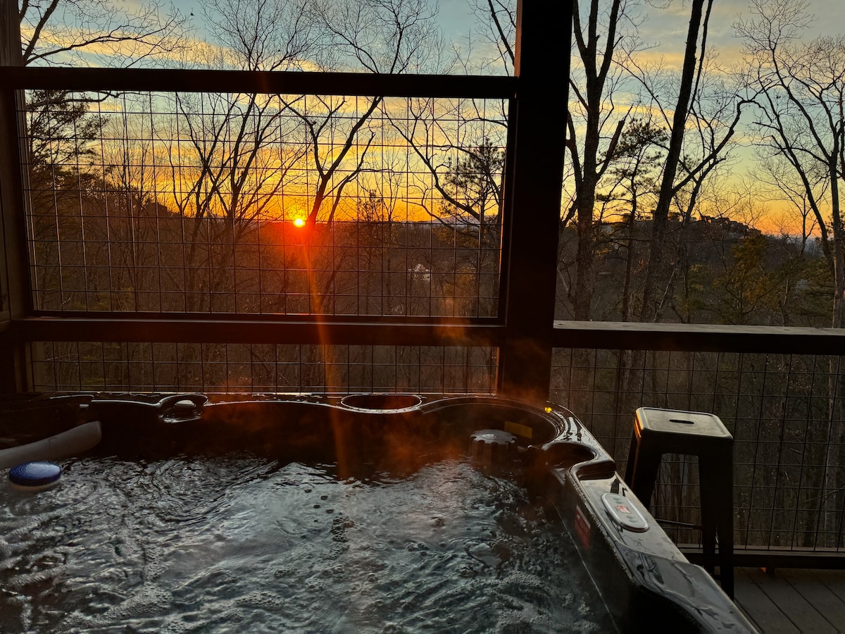 ¡Escápate a nuestra moderna y aislada cabaña de 2 dormitorios en las Montañas Humeantes! Situado cerca de Pigeon Forge, a solo 10 minutos en auto de Dollywood y a solo 20 minutos de Gatlinburg, tendrás fácil acceso tanto a la emoción como a la relajación. Sumérgete en los relajantes sonidos de la naturaleza, ocasionalmente acompañados por el lejano silbato del tren Dollywood. Relajarte en el acogedor jacuzzi mientras disfrutas de las impresionantes vistas a la montaña y al atardecer que pintan el cielo con tonos vibrantes.
